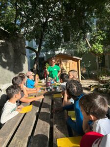 Notre structure est dédiée à offrir aux enfants une expérience enrichissante et pleine de découvertes, en mettant l’accent sur la nature. Tout au long de la journée, ils profitent d’activités en extérieur, que ce soit dans les jardins et parcs environnants, sur notre ferme pédagogique ou dans nos jardins partagés.